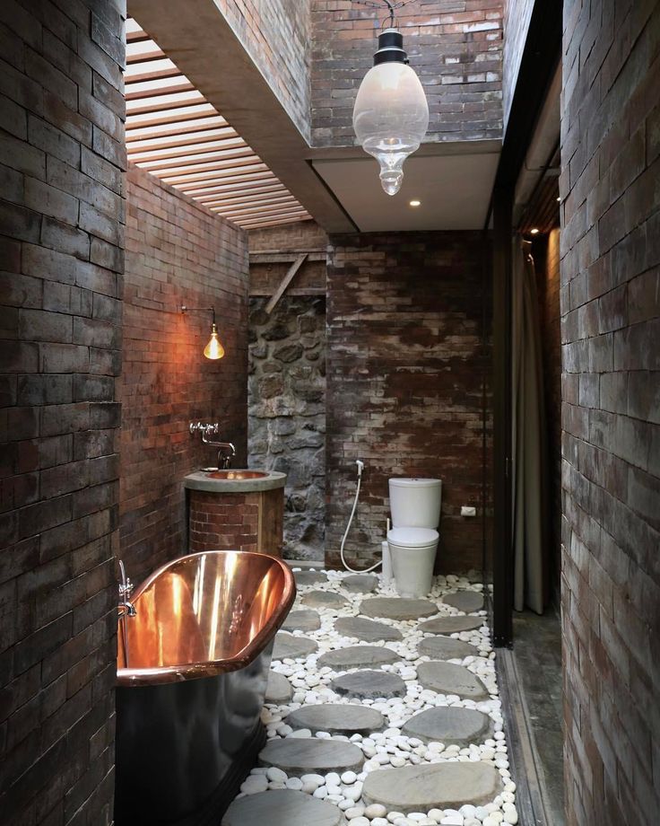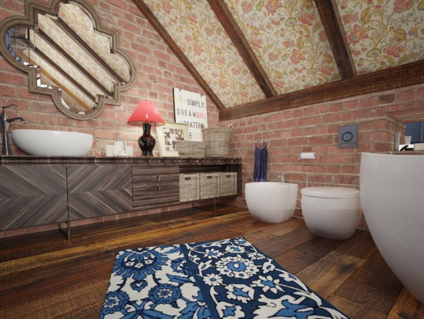 L'intérieur sera réussi si vous pouvez combiner bois naturel, briques anciennes, plomberie simple et décoration vintage