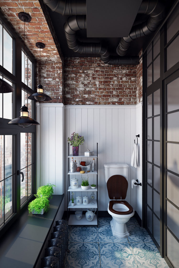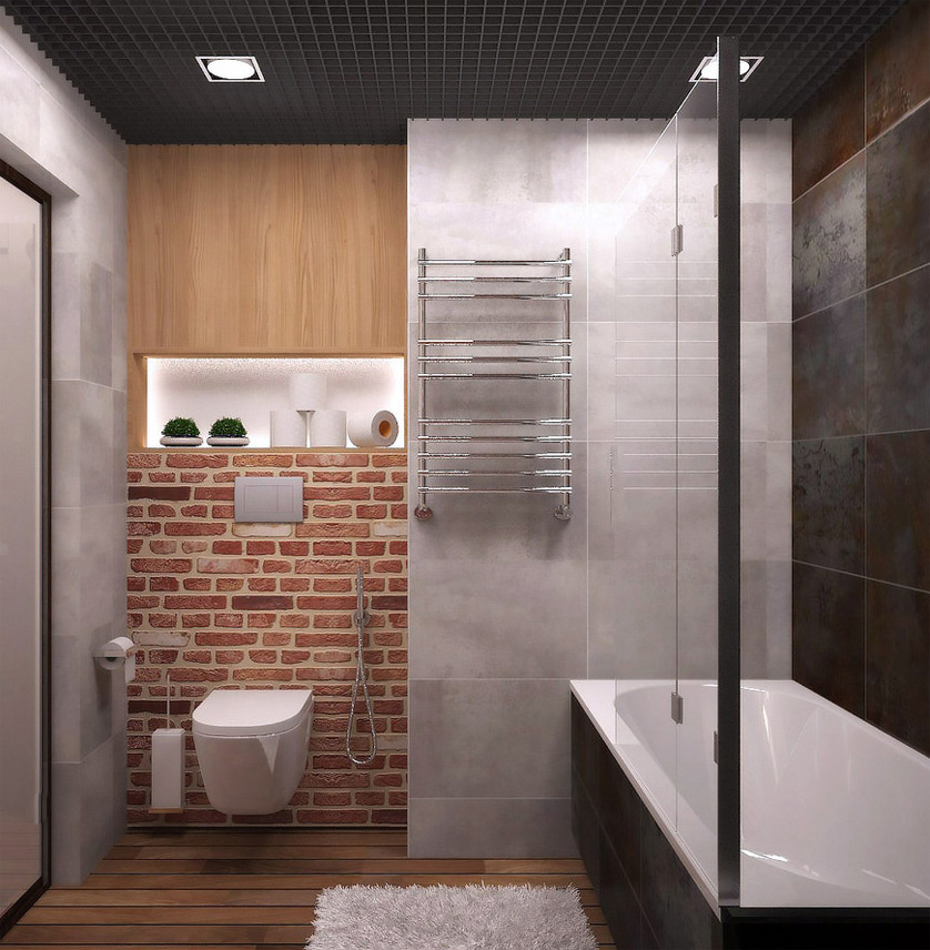 Une combinaison réussie de loft et de minimalisme dans une seule salle de bain