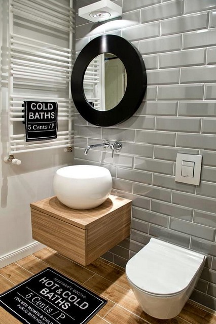 - Utilisez de la faïence sanitaire compacte (articles sanitaires). Si possible, cachez le baril des toilettes avec de l'eau dans le mur.