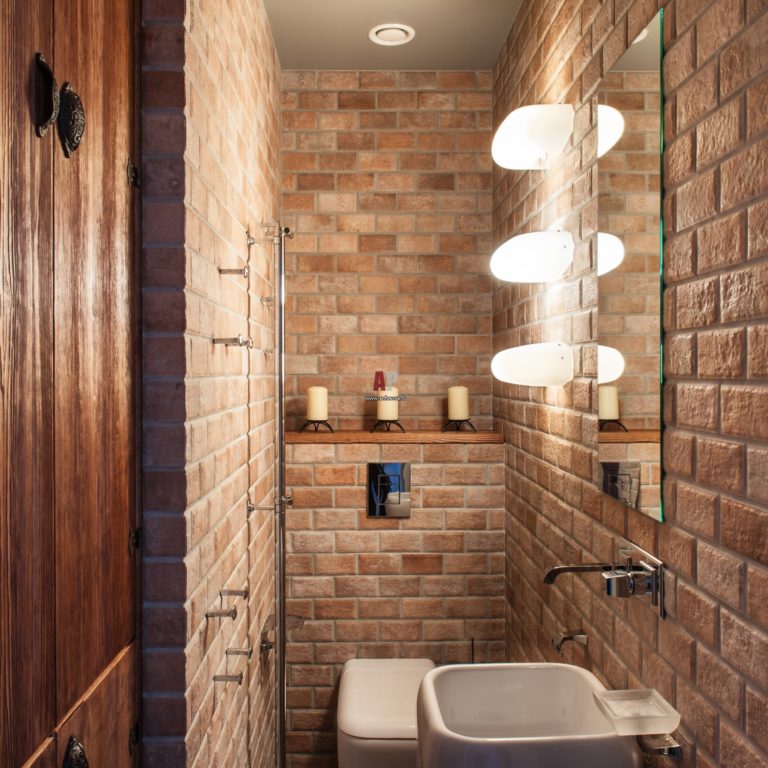 Si les murs de la maison sont en briques rouges, vous pouvez nettoyer la maçonnerie du plâtre, tremper avec un composé de collage et faire la décoration intérieure