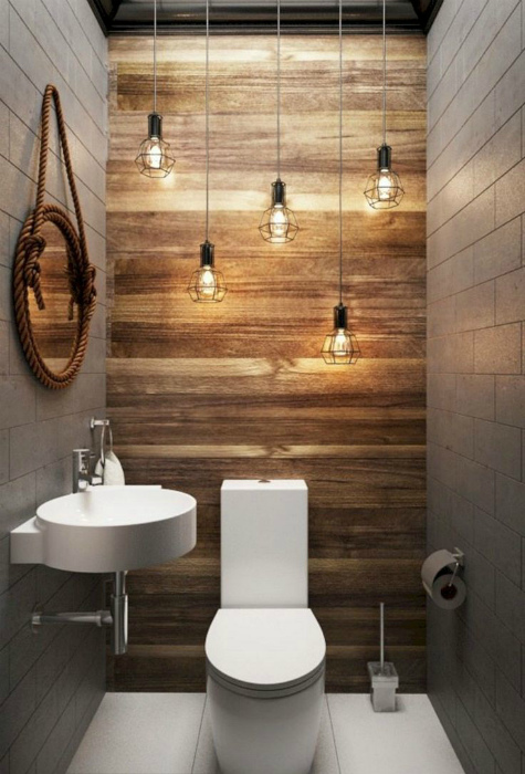 - Faites attention à l'éclairage. Si les toilettes se trouvent dans une maison privée, les rayons naturels de la fenêtre joueront un rôle important. Lors de l'aménagement de toilettes dans un appartement, faites particulièrement attention aux sources de lumière artificielle. Ils devraient suffire. Pour économiser de l'énergie et organiser l'éclairage sonore, achetez des projecteurs avec de puissantes ampoules LED.