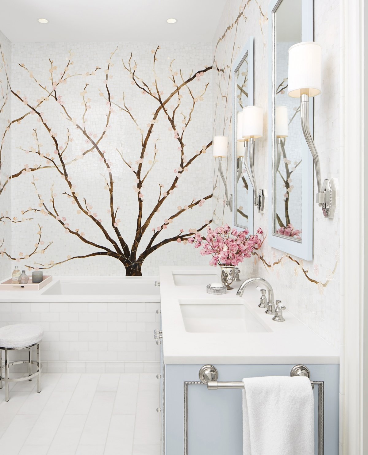 Si les surfaces de votre salle de traitement ont des coudes, des colonnes, des arcs ou des niches, les carreaux fins ou les mosaïques conviennent mieux au revêtement.