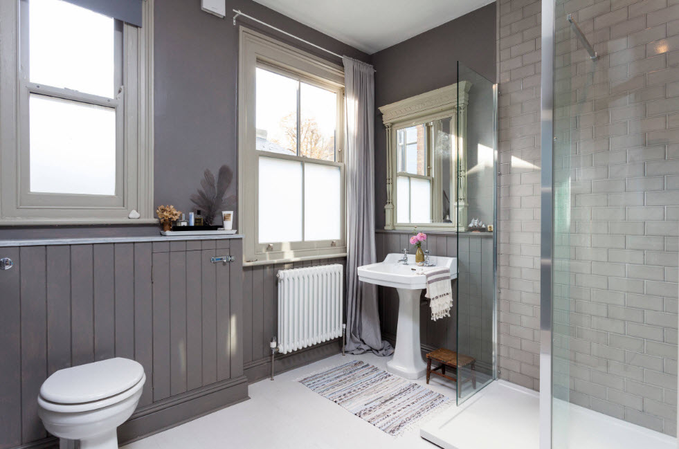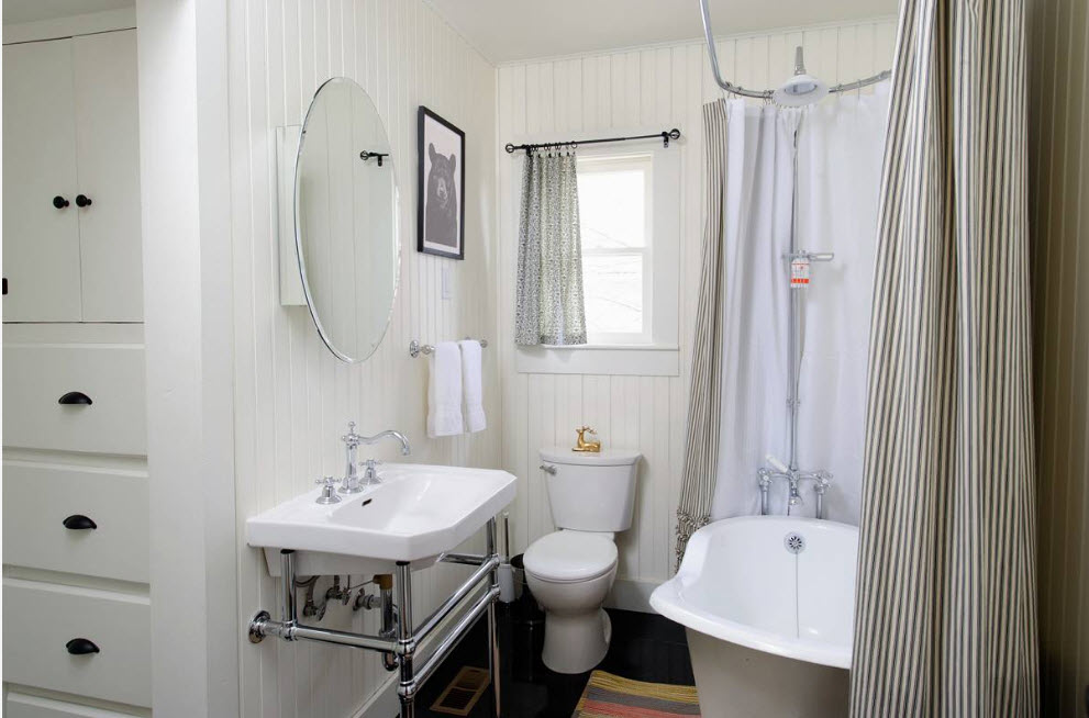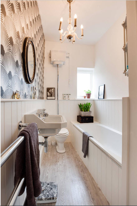 Des panneaux noirs et une plomberie blanche conviendront dans une salle de bain de style Art Déco ou Art Nouveau.