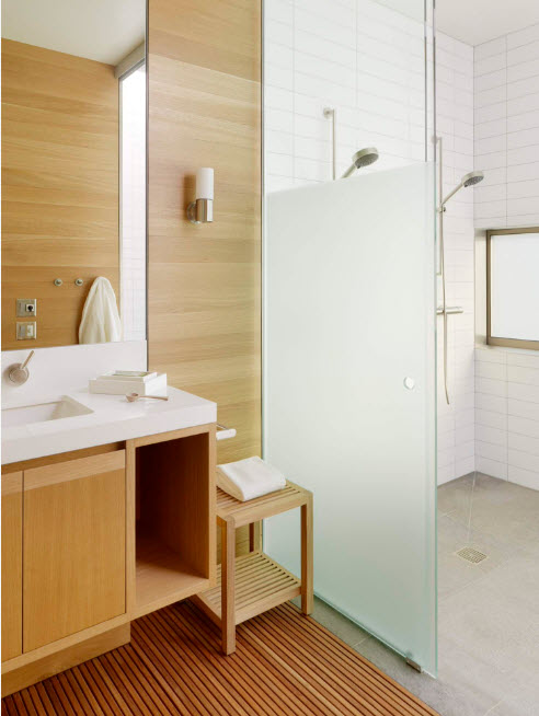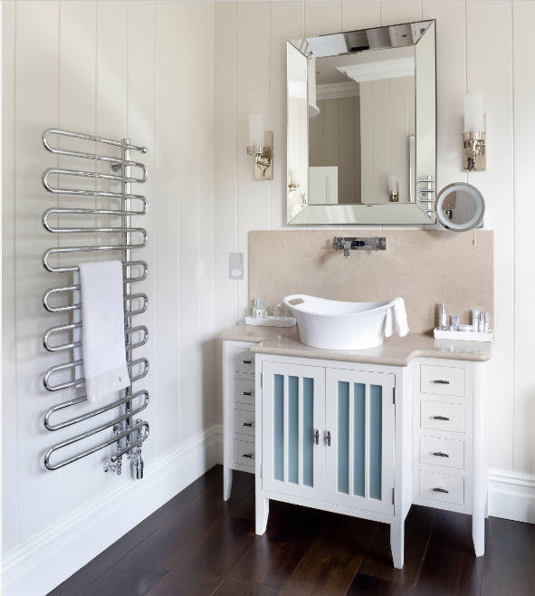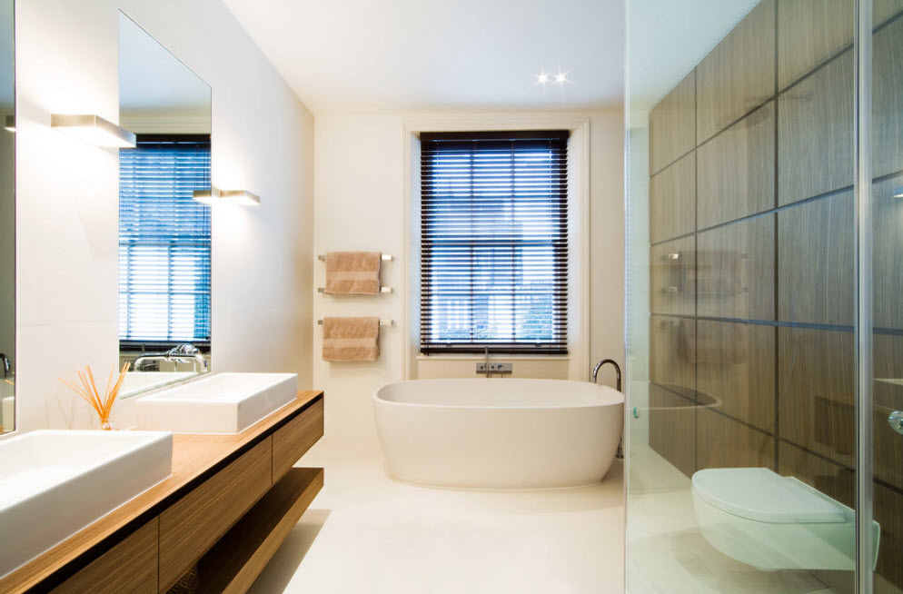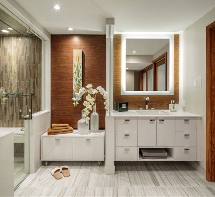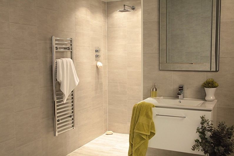 Et si le propriétaire de la maison veut changer la conception de la salle de bain ou simplement changer l'atmosphère, ce sera très facile à faire. Il suffira juste de remplacer certains panneaux. Le style moderne implique l'utilisation de couleurs pures et neutres. Mais la palette traditionnelle comprend toutes les nuances neutres aux tons de pierres précieuses.
