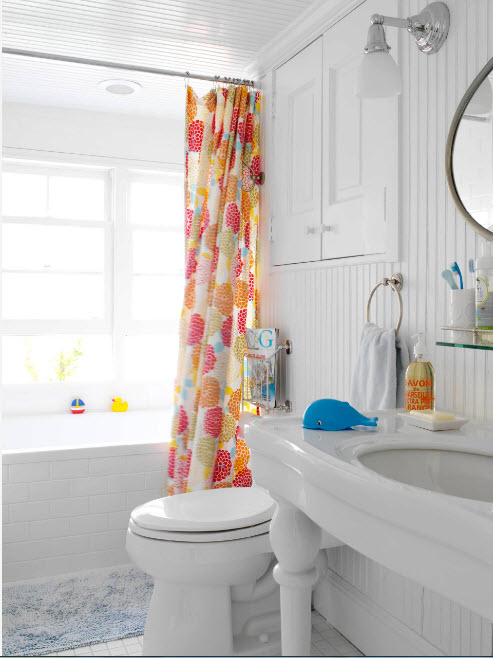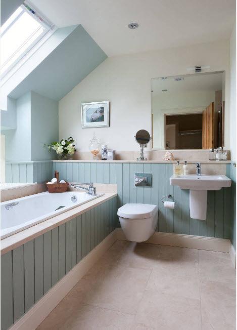 Les rayures verticales soulèvent visuellement le plafond de la salle de bain