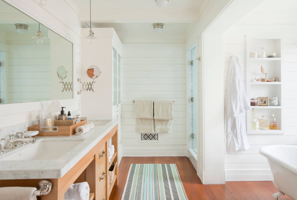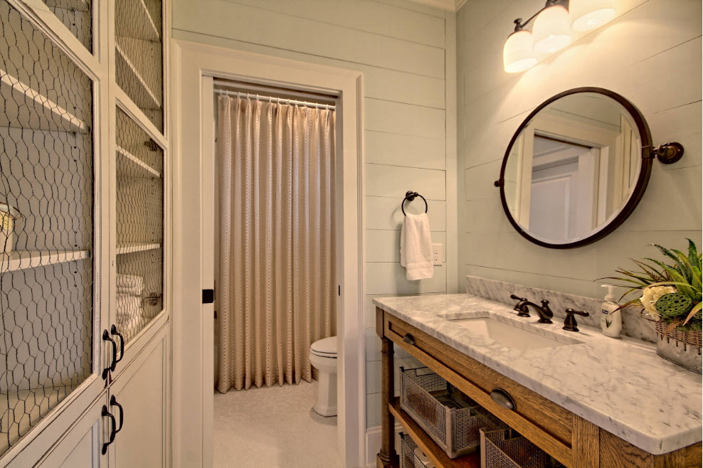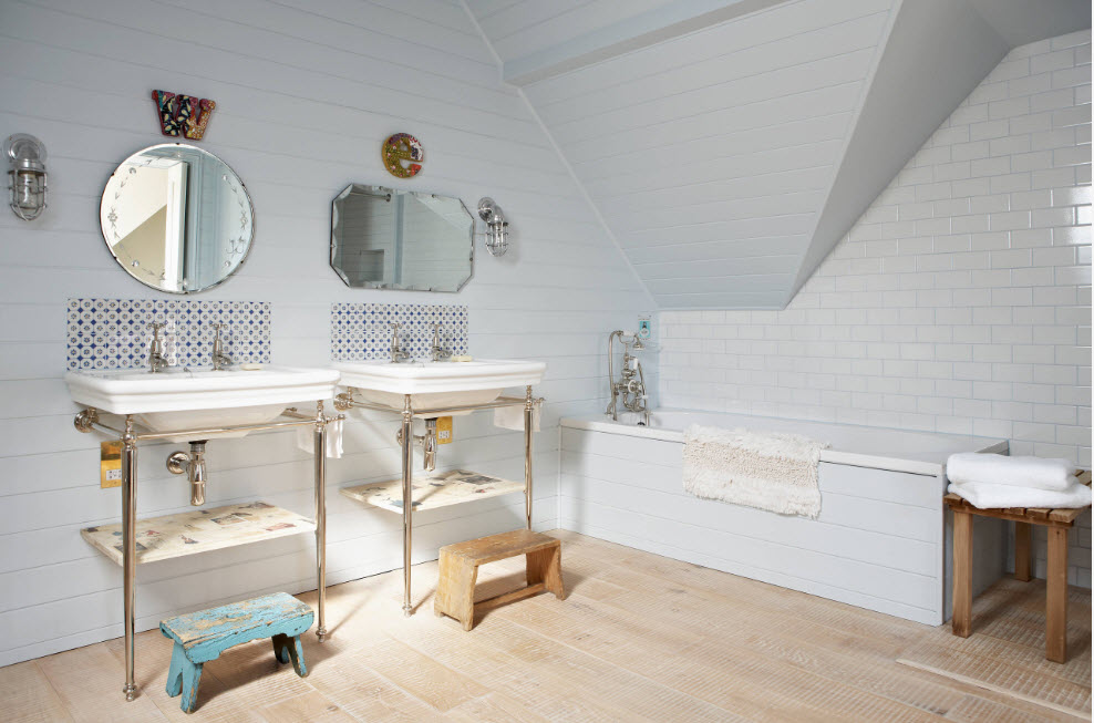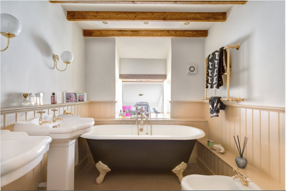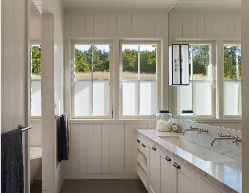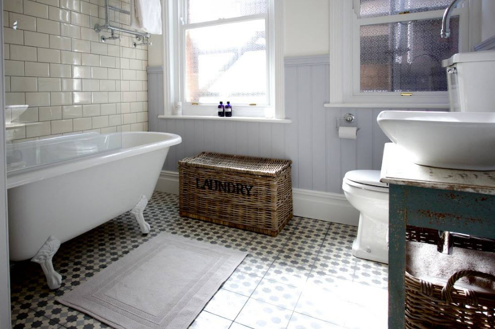 Une telle finition combinée est parfaite pour une salle de bain dans une maison de campagne