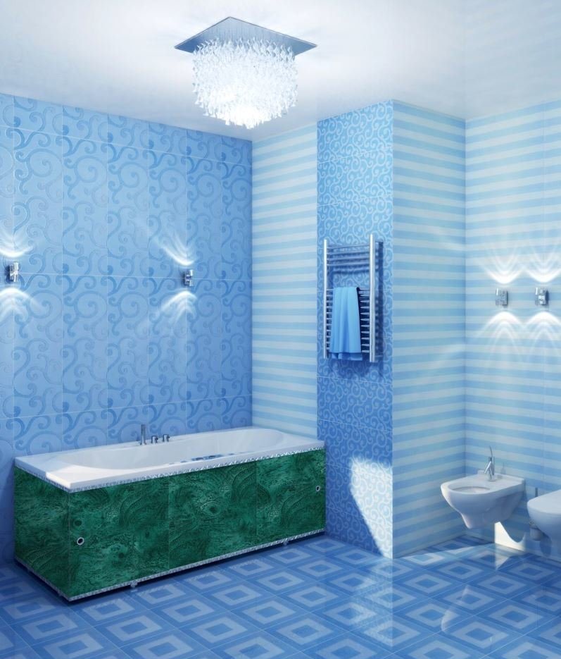 Étant donné que cette pièce est souvent cachée aux regards indiscrets, la palette de couleurs, le motif et le relief peuvent être choisis uniquement à votre discrétion. Par exemple, les couleurs vives et sombres, qui auront l'air mal dans d'autres pièces, peuvent parfaitement convenir à la salle de bain.