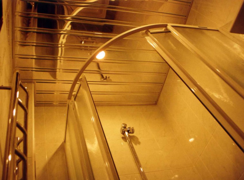 Le plafond à lattes dans la salle de bain est une bonne alternative à l'étirement cher. Il est pratique et rentable: en dessous, vous pouvez masquer les utilitaires de manière compacte, la préparation du plafond avant le montage n'est pas nécessaire et l'installation est facile à faire indépendamment. Le plus important: résistance élevée à l'humidité, températures extrêmes.