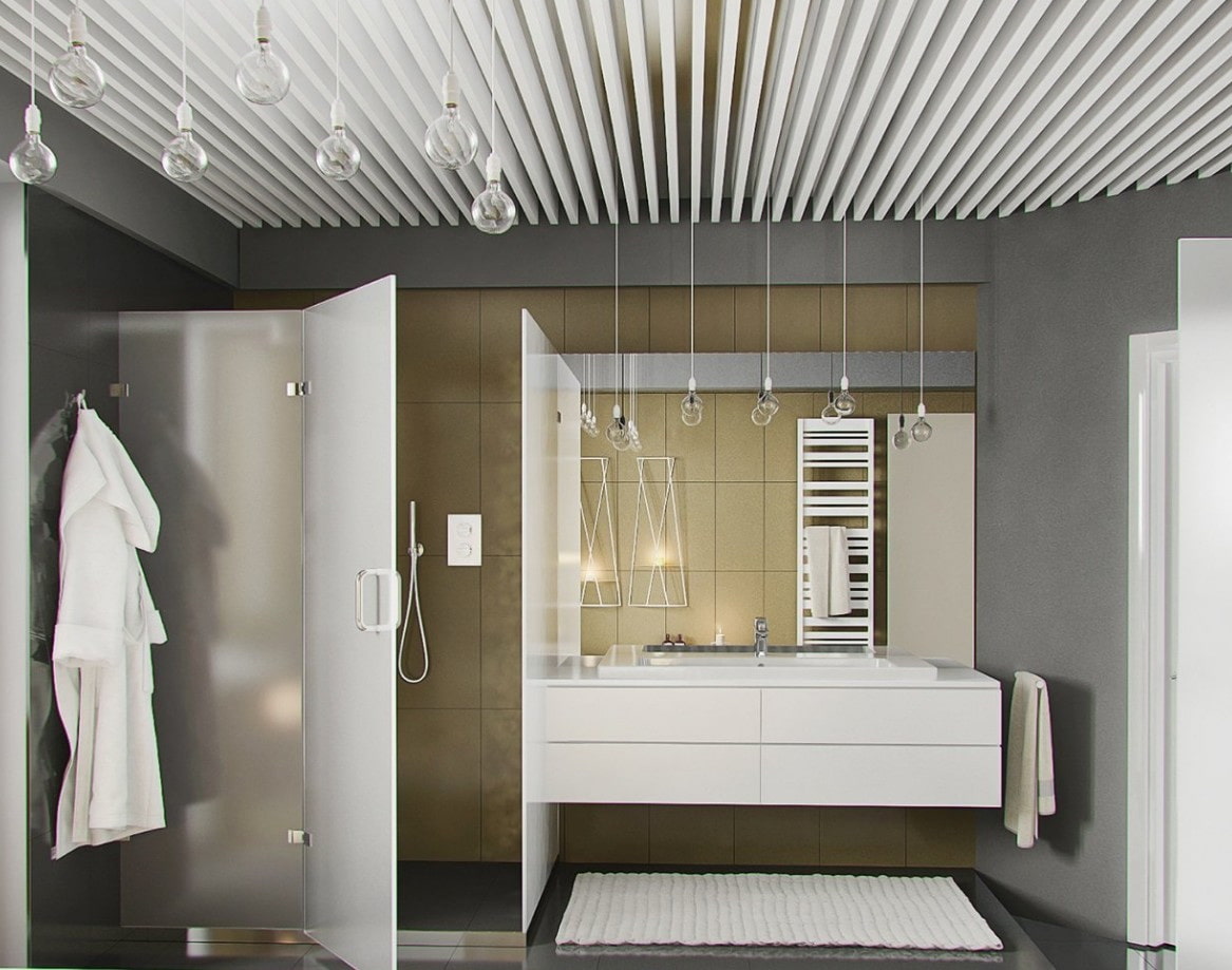 - Plafond à lattes pour la salle de bain: qu'est-ce que c'est?