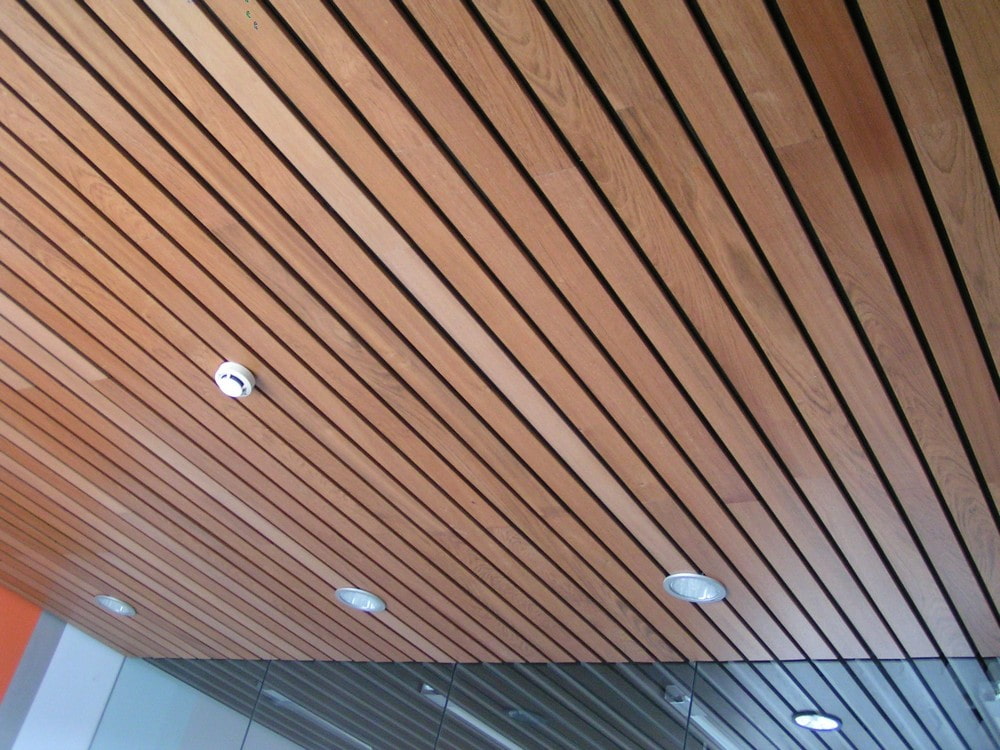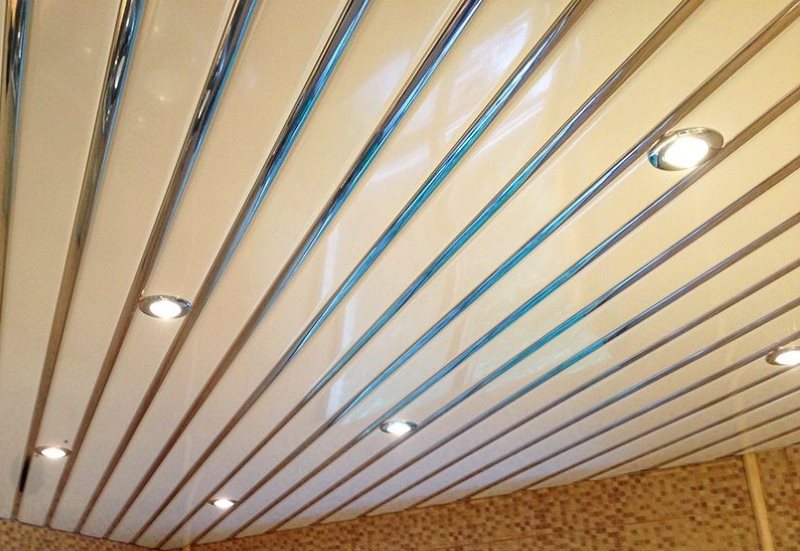 Une caractéristique de ce type de plafond est l'insertion entre les lattes, qui peut être identique ou différente en teinte et en texture. Ils sont nécessaires pour la beauté et pour donner de la variété au plafond, au jeu des ombres.