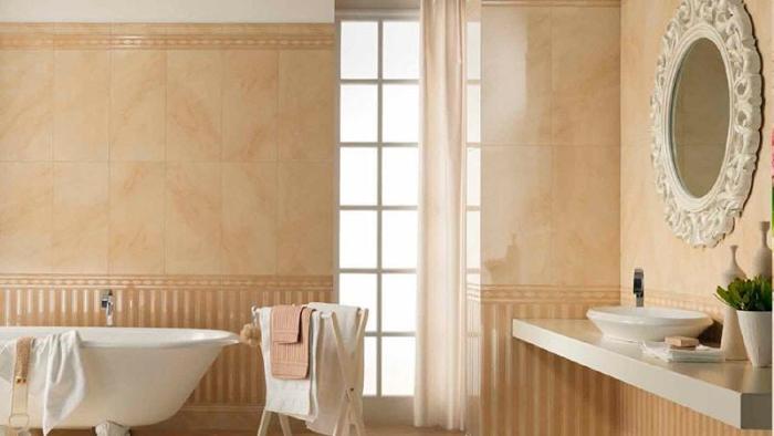 Faites attention! Pour installer des carreaux beiges dans la salle de bain, il est recommandé d'utiliser une solution adhésive antifongique. Cela empêchera l'apparition de moisissures à l'intérieur de la couche de parement et sa destruction soudaine.