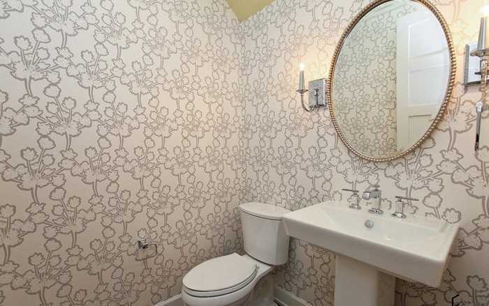 Aucun papier peint ne convient à la salle de bain. Il est nécessaire de prendre exclusivement lavable, c'est-à-dire résistant à l'humidité. Il en existe de nombreux types différents.