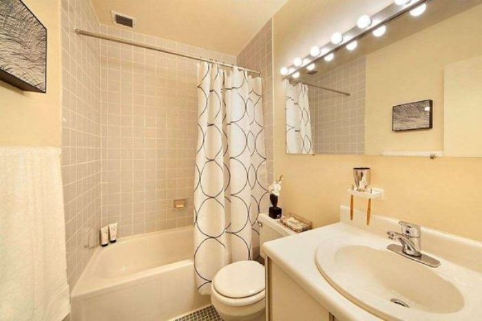 - Il devrait y avoir suffisamment de lumière - les ombres dans les coins nivellent un avantage significatif d'une baignoire beige comme une sensation d'espace et de propreté. Ils ne devraient pas l'être.