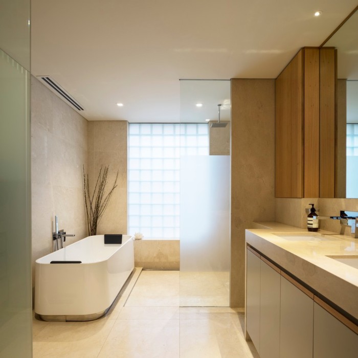 - Design de salle de bain en marron beige