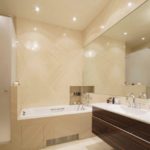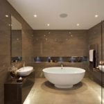 - Caractéristiques de l'éclairage pour la salle de bain dans des couleurs beiges