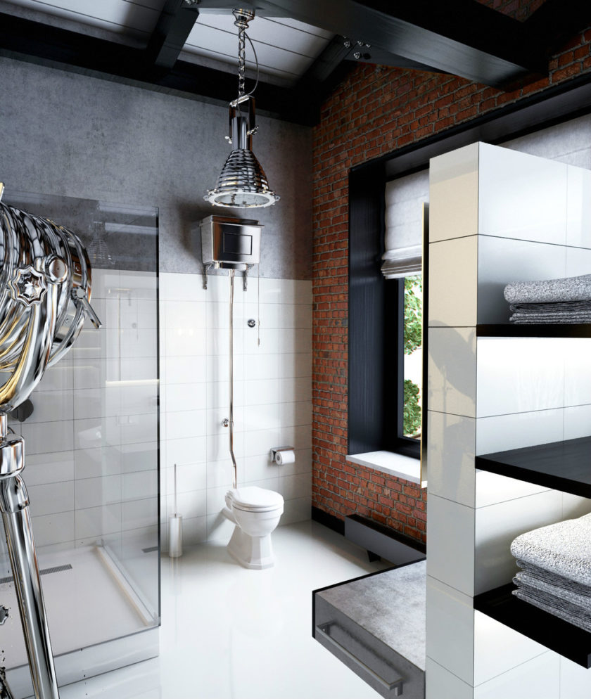 Le plancher en vrac dans la salle de bain est très populaire, car il vous permet de créer les solutions les plus inattendues.