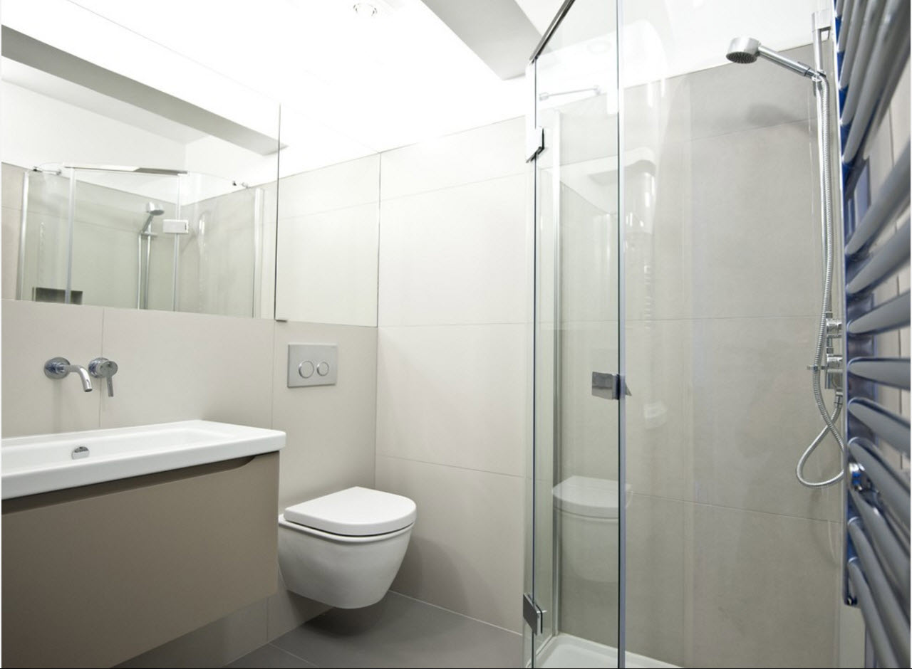 Les stylistes ne recommandent pas d'utiliser plusieurs tons dans une petite pièce à la fois. Cette solution minimise le poids de la salle de bain.