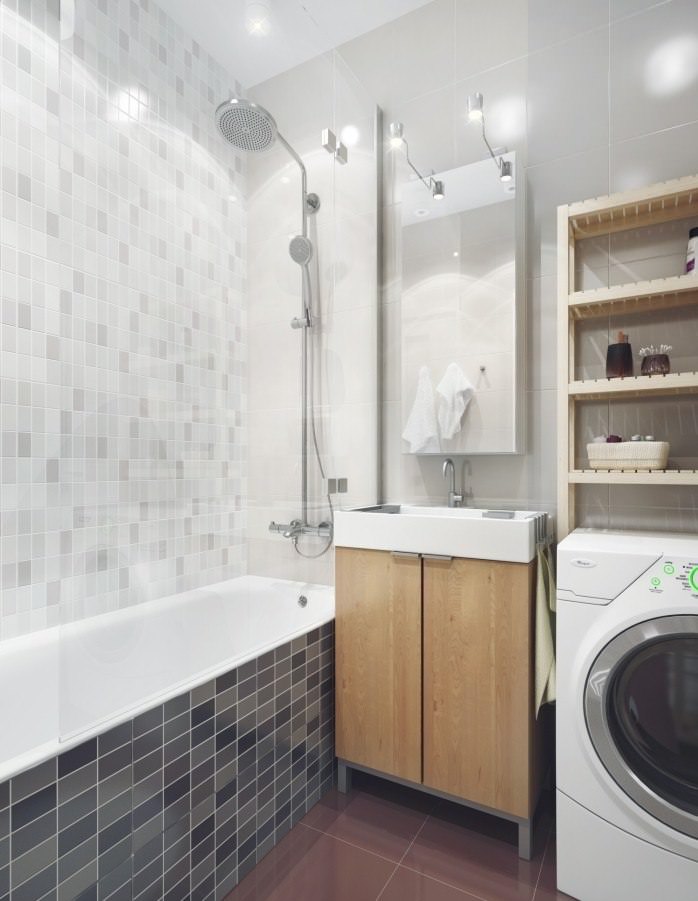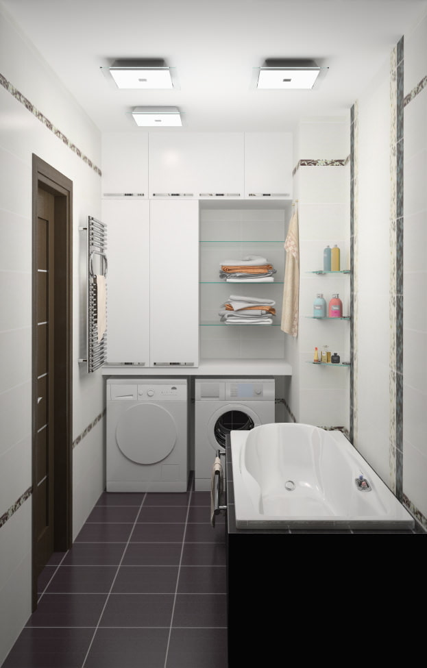 - généralement une machine à laver est placée dans cette zone, mais pour libérer de l'espace, elle peut être déplacée dans la cuisine.