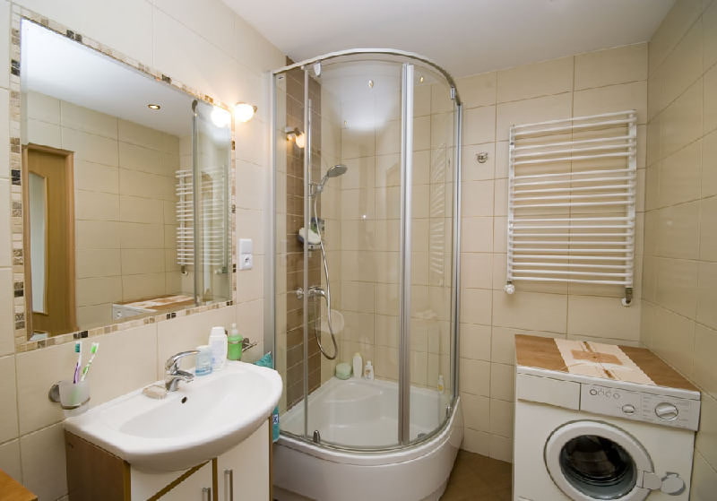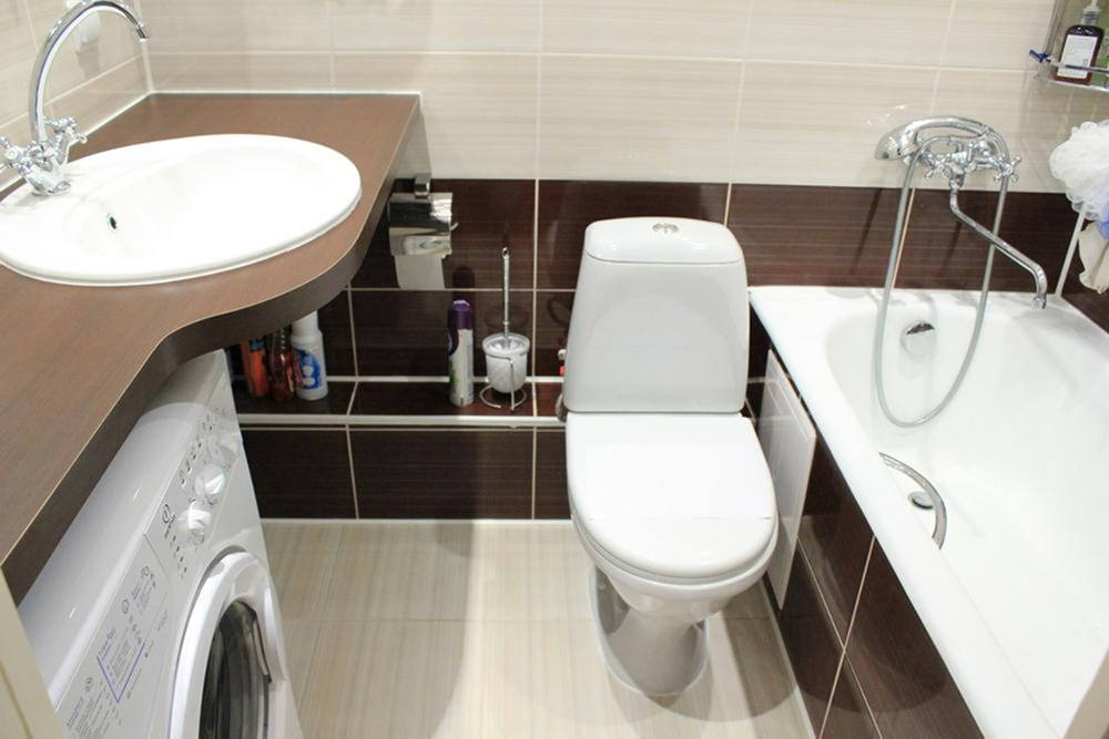 Une machine à laver sous l'évier est une excellente idée pour une petite salle de bain