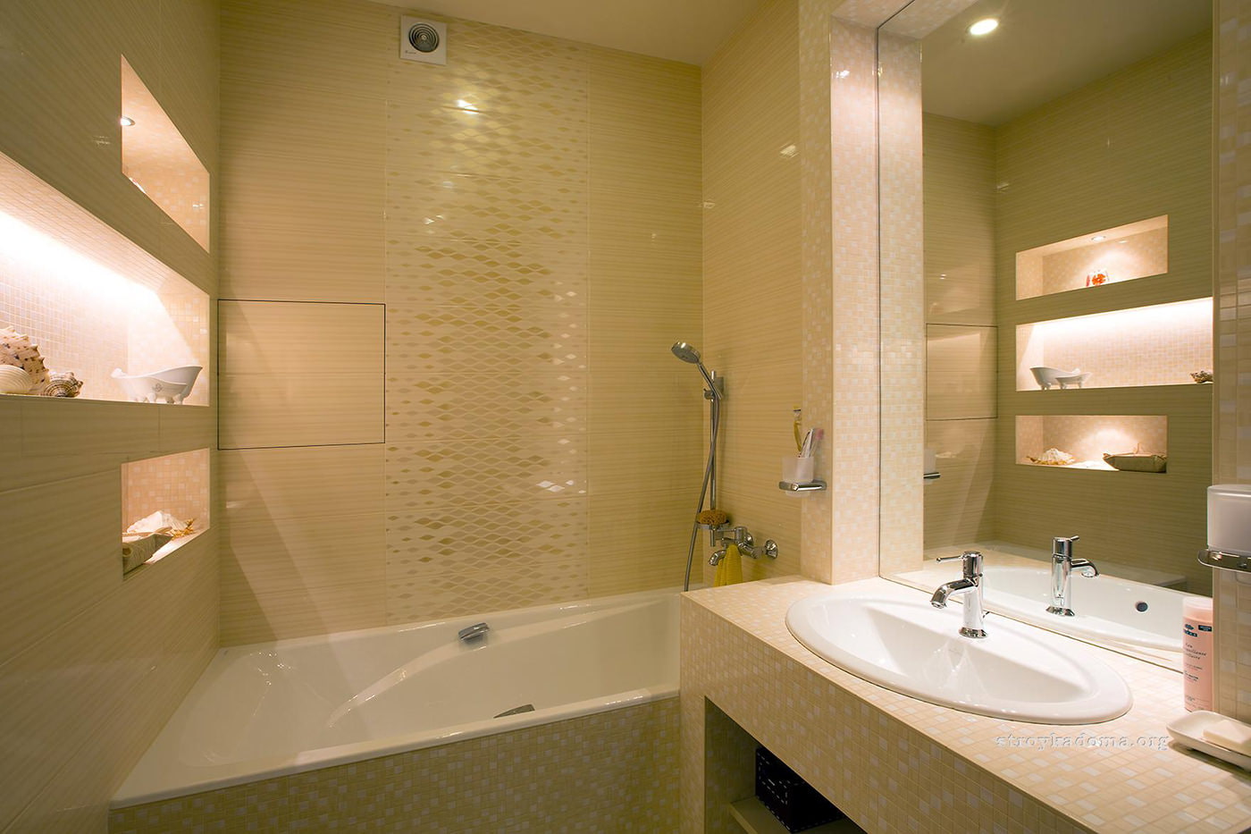 Les experts vous recommandent de vous familiariser avec la photo des conceptions de réparation de salle de bain avant de la commencer. De telles images permettent de mettre en œuvre des éléments exclusifs même avec de petites tailles de pièce.