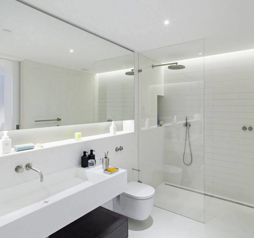 Si vous êtes un heureux propriétaire d'une salle de bain séparée, la zone de la chambre vous permettra d'utiliser l'une des deux idées modernes originales - un double lavabo ou une douche double.