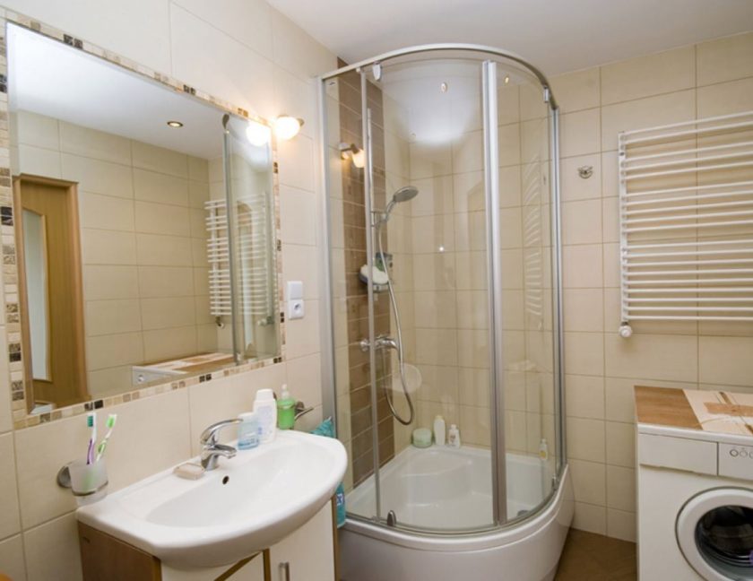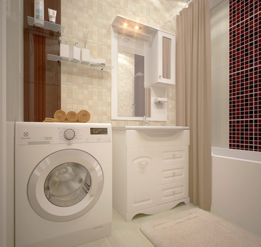 Remplir avec de la plomberie et des appareils électriques est préférable de laisser au minimum, en accordant plus d'attention à la fonctionnalité et à l'intérieur de la salle de bain de 5 mètres carrés. m