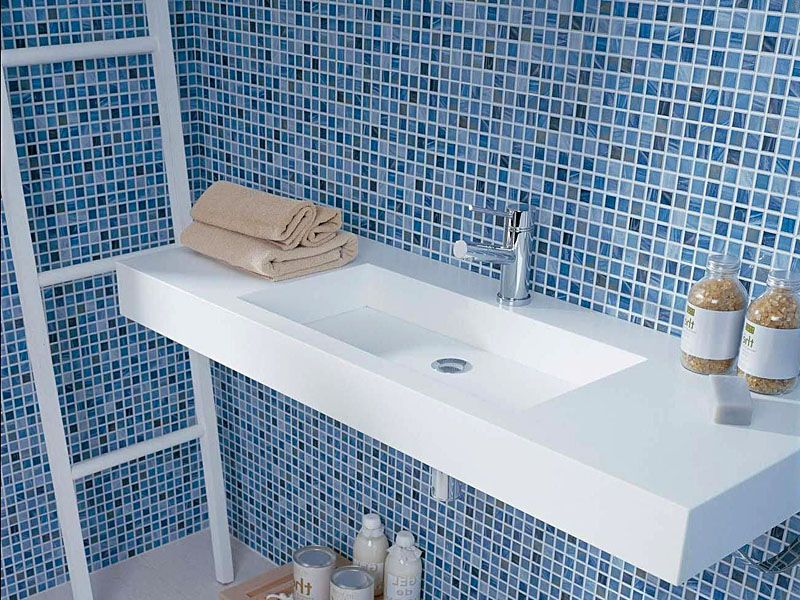 Il est pratique lorsqu'il y a une étagère avec un miroir ou des carreaux de miroir au-dessus du lavabo.