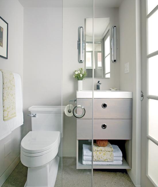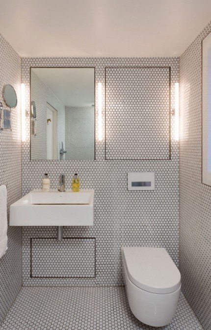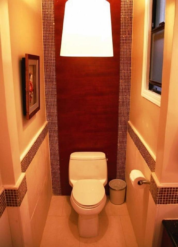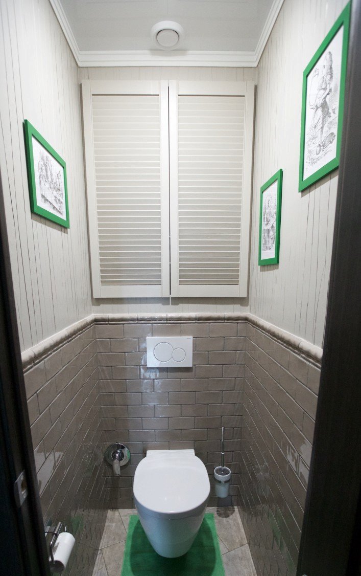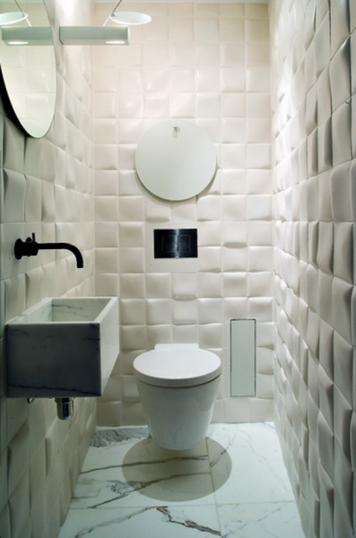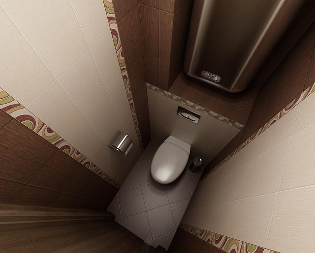 La pose diagonale de carreaux au sol augmentera visuellement la surface d'une petite toilette
