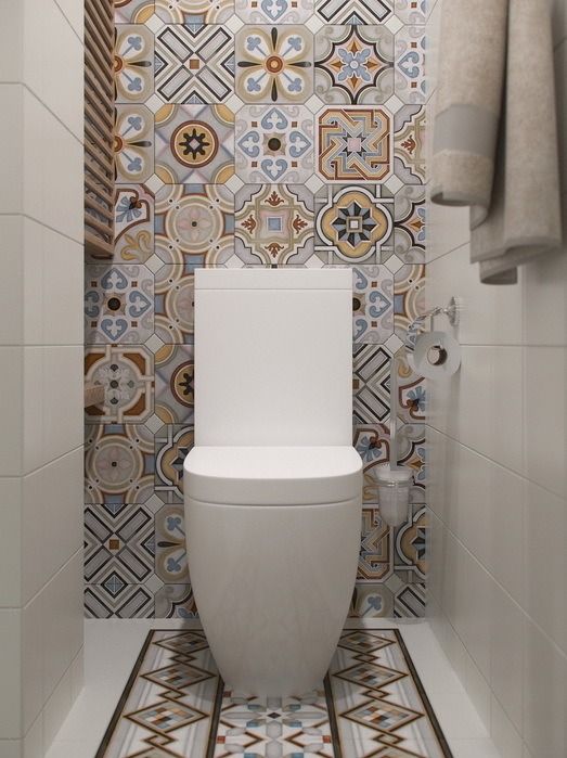 Assurez-vous de faire quelques options pour les projets de conception. Ceci est nécessaire pour la présentation abstraite et la sélection d'un spécifique. Par exemple, sur la première photo, un papier peint dans les toilettes, une photo du dessin dans le Khrouchtchev que vous voyez ci-dessous. Dans la deuxième option, envisagez d'utiliser des carreaux de céramique sur les murs.
