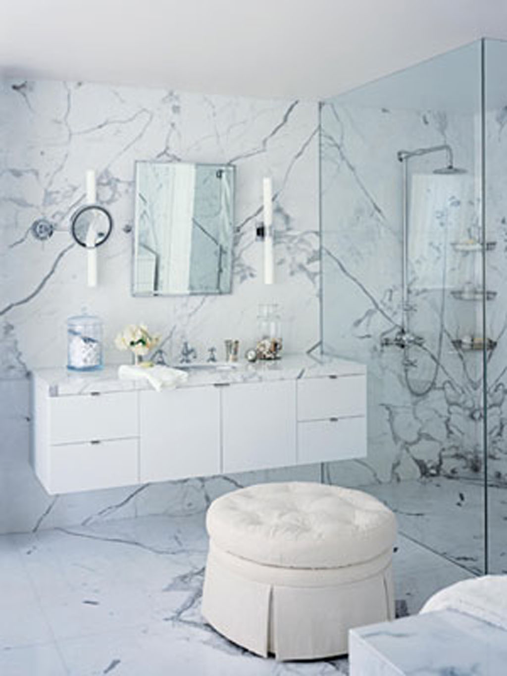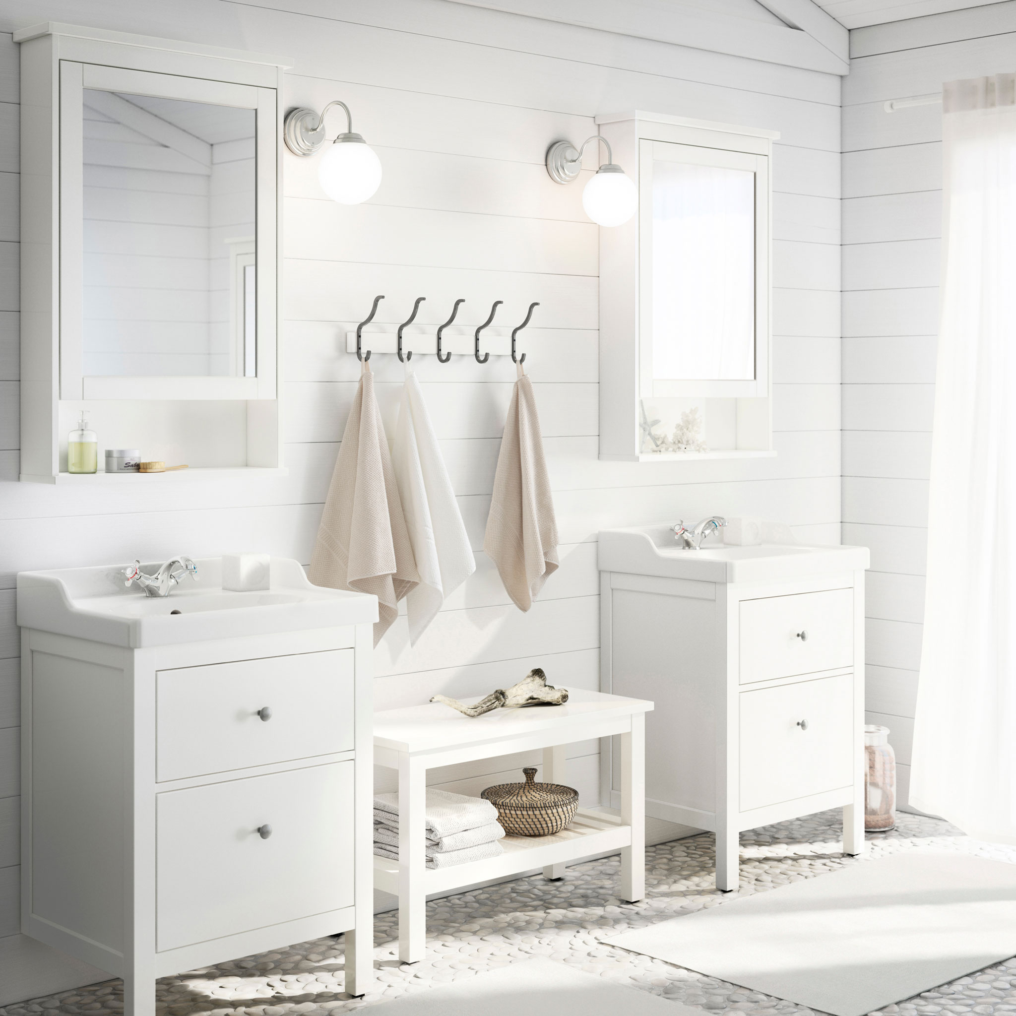 - Utilisez un design léger pour souligner le design de la salle de bain blanche et tous ses avantages.