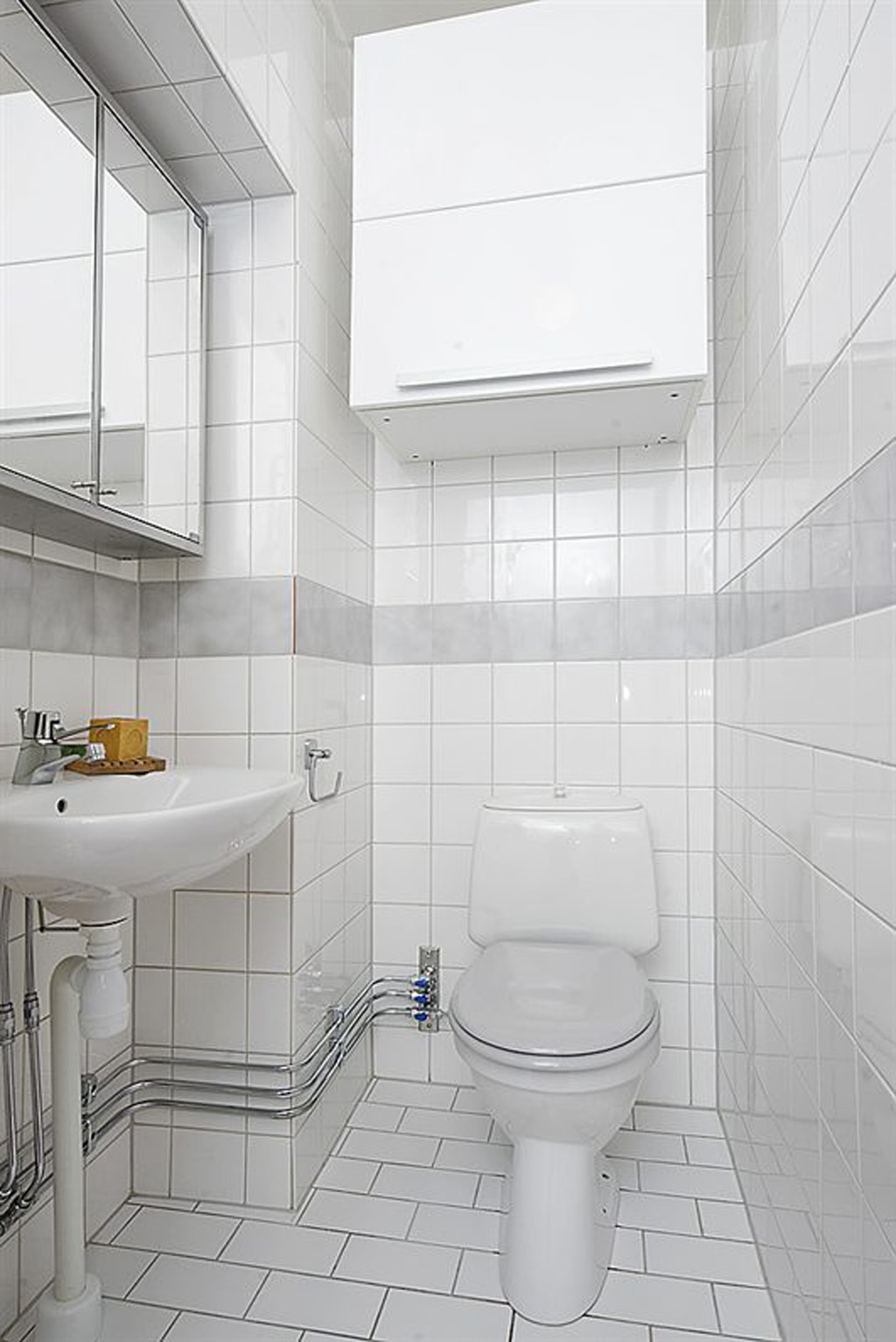 - Si la pièce est petite, placez la plomberie aussi compacte que possible, éliminez les meubles inutiles.