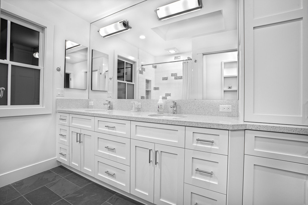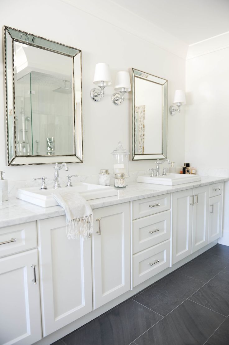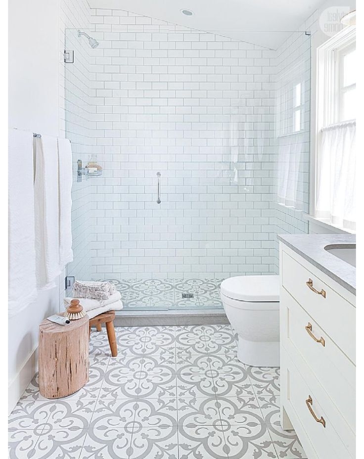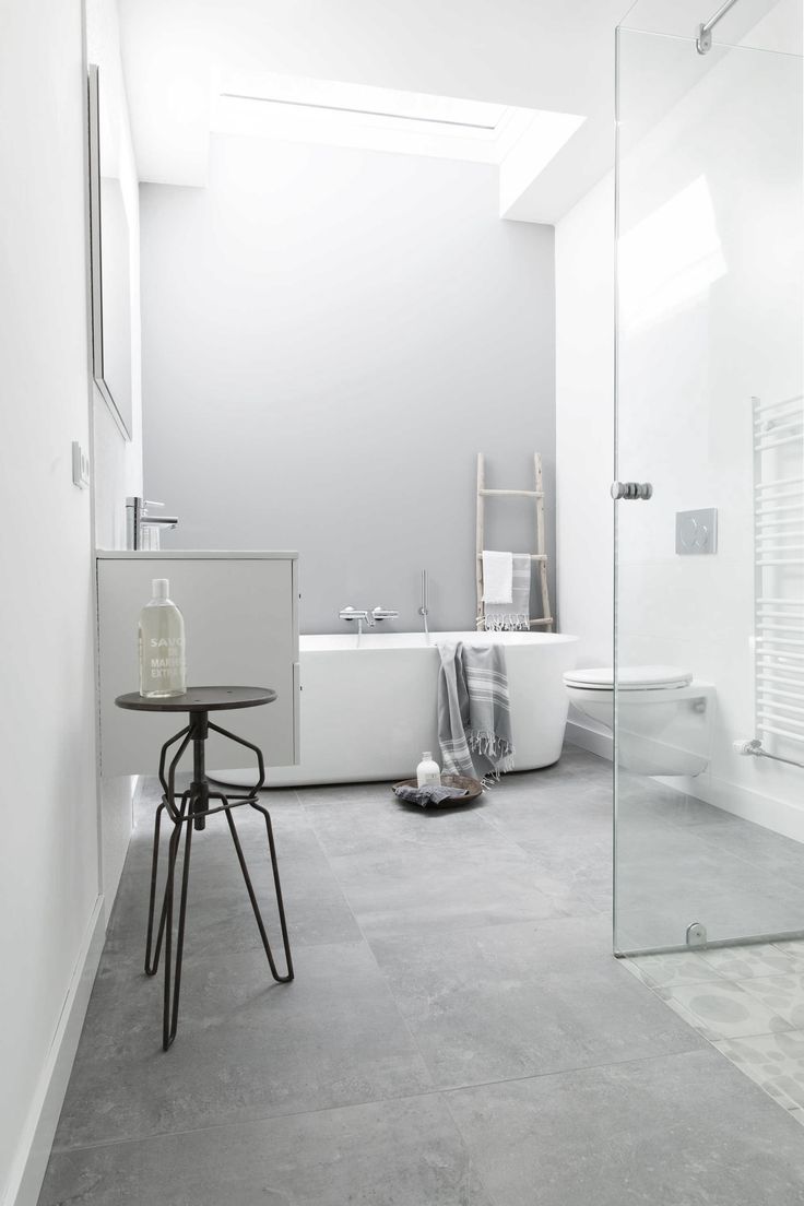 Salle de bain blanche avec sol gris