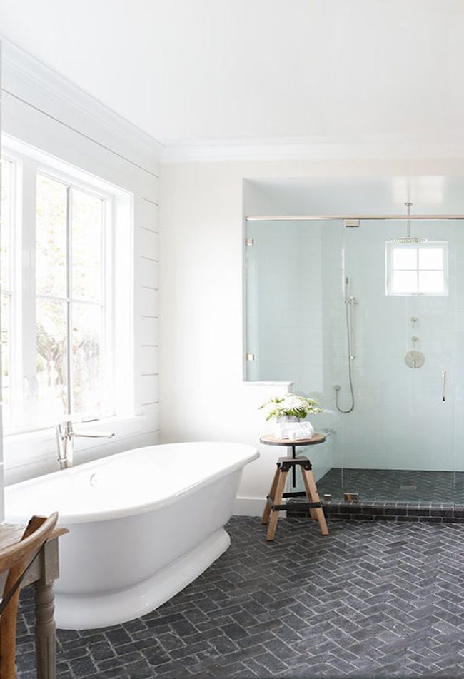 Les carreaux de céramique conviennent bien aux baignoires blanches