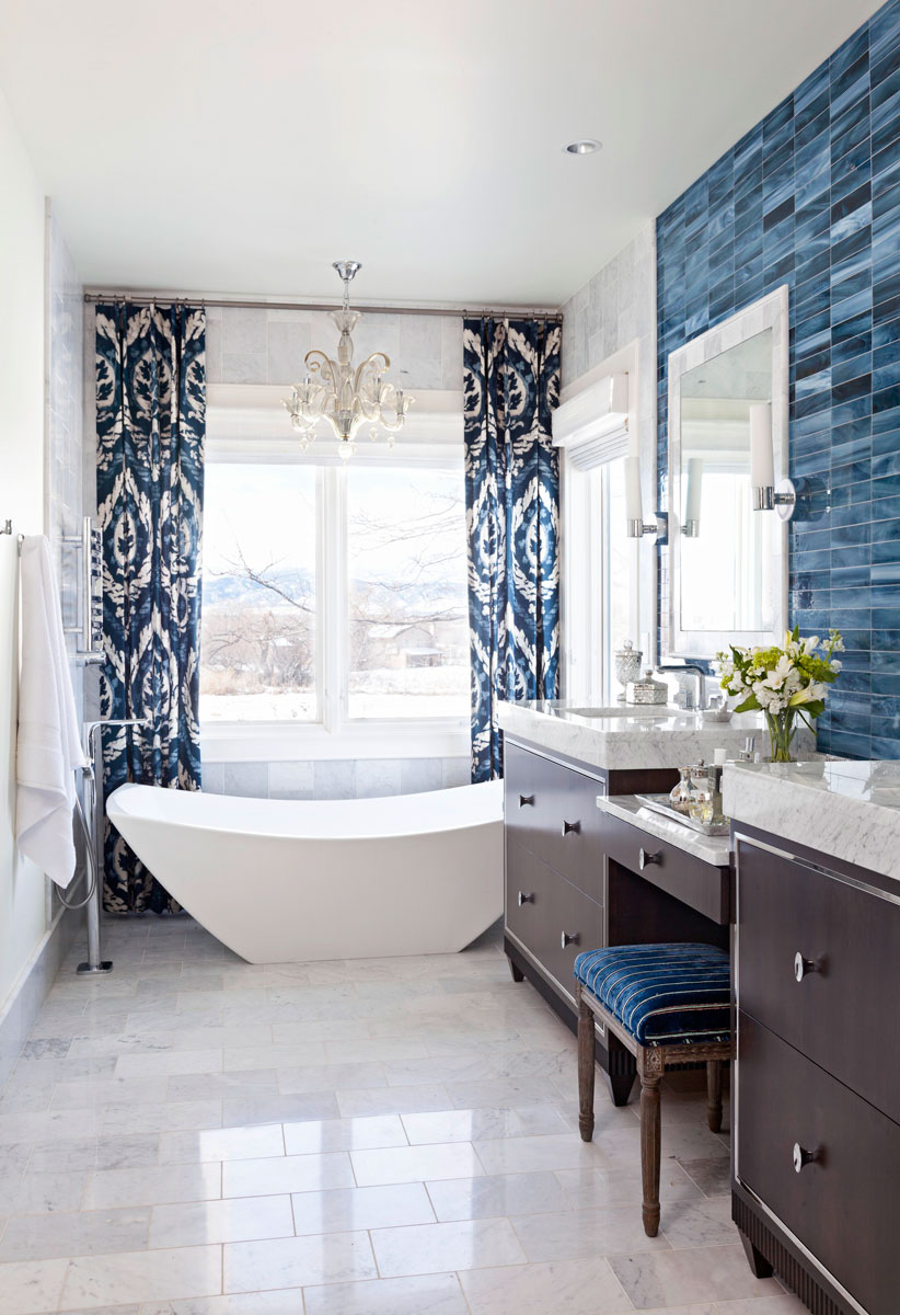 Le contraire du précédent. Il est léger et gratuit, et accepte également les tons blancs dans l'agencement de la salle de bain. Seulement dans ce cas, la coloration portera une charge sémantique et aura une humeur d'un style méditerranéen complètement différent.