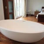 Les modèles en céramique sont préférés par les personnes au goût exquis.Un tel bain peut être réalisé en différentes couleurs et formes, ce qui en fera l'objet central de la pièce. La surface chaude et agréable au toucher vous permet de vous sentir dans le spa.Par conséquent, le plus souvent, les produits de ce matériau sont installés dans des hôtels à la mode et d'autres établissements d'élite.