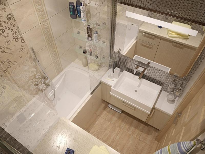 Pour une salle de bain, qui a une quadrature relativement petite, comme, par exemple, dans de nombreux appartements typiques, l'option la plus rentable serait d'utiliser des carreaux pour la décoration de différentes combinaisons, à la fois en taille et en couleur. Une option acceptable est de combiner avec des murs peints ou décorés de mosaïques.