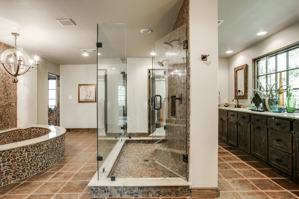 En plus de ces choses atypiques à l'intérieur de la salle de bain, il devient également populaire d'ajouter des éléments de la faune comme diverses plantes et parfois des jardins suspendus miniatures. Si la salle de bain dispose à la fois d'une baignoire et d'une cabine de douche, dans ce cas, il est préférable d'utiliser des cloisons ou des rideaux en verre.
