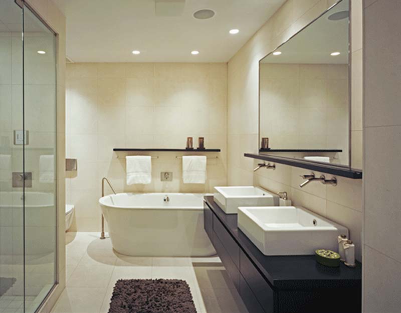 L'éclairage classique consiste à installer des luminaires autour du périmètre de la salle de bain