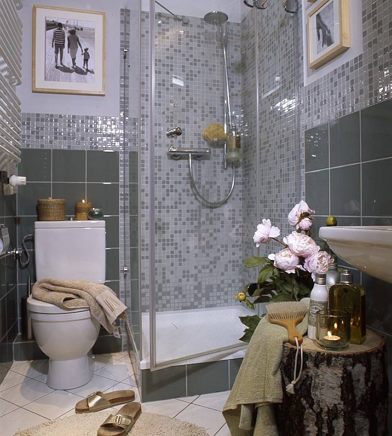 IMPORTANT! Malgré le fait que la Provence, comme l'un des favoris, est souvent utilisée dans les petites pièces, elle semble beaucoup plus avantageuse dans les salles de bains spacieuses.