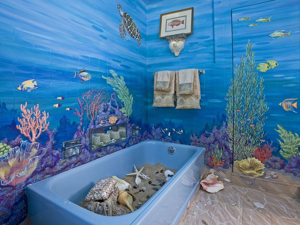 Décoration murale sur des carreaux de salle de bain avec un motif exclusif