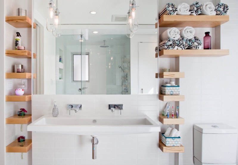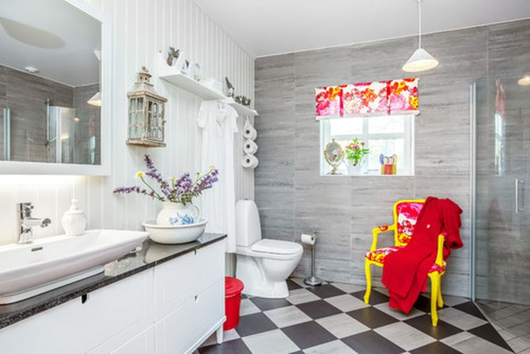 La salle de bain de style scandinave permet des éléments de décoration contrastés