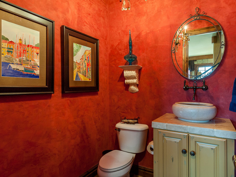 Sa caractéristique est la couleur rose des surfaces, les meubles de petite taille, la présence de fenêtres, un rejet complet des plafonniers, le minimalisme dans les accessoires et les bijoux. Toute plomberie moderne correspond à ce style.