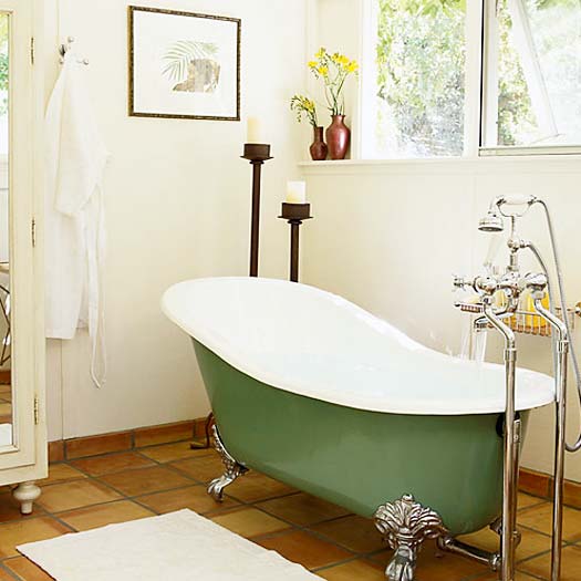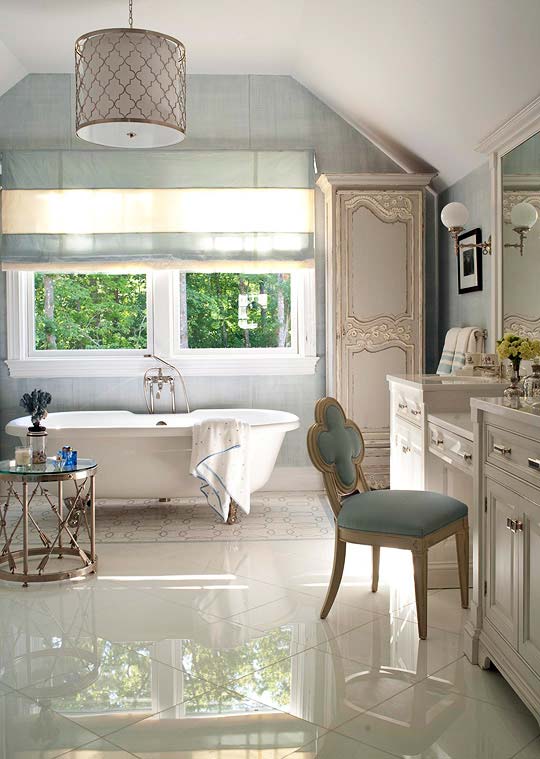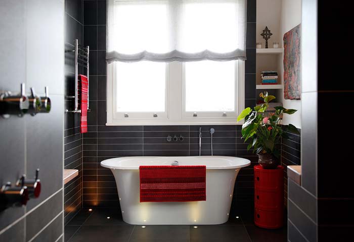 Pour rendre le design d'une salle de bain avec fenêtre encore plus attrayant, achetez une baignoire au design insolite.