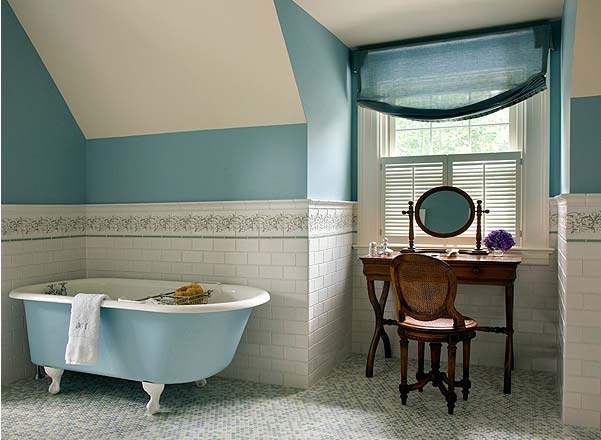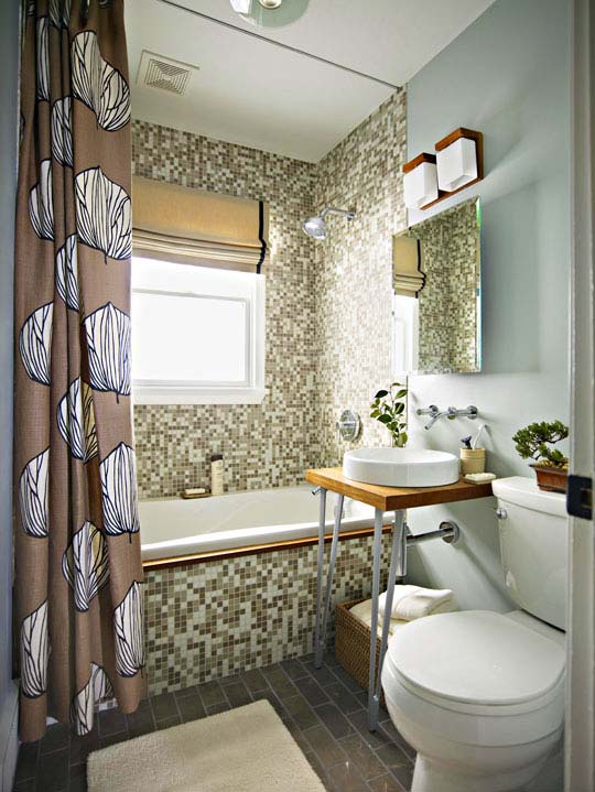 S'il est décidé qu'il y a une salle de bain avec fenêtre, alors pour commencer, décidez du style, des matériaux de décoration, de la disposition, réfléchissez à la palette de couleurs.