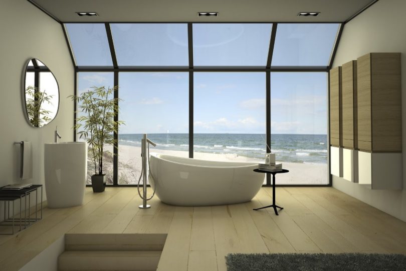 La fenêtre de la salle de bain est une solution vraiment originale créée pour les personnes qui apprécient les options non standard et l'unité avec la nature.