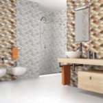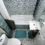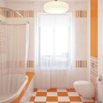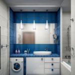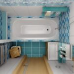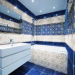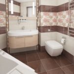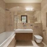 Pour un bain à Khrouchtchev, avec une petite taille, étant donné son étanchéité, sa combinaison avec les toilettes, les tons clairs fonctionneront vraiment mieux. Souvent, c'est une couleur beige avec des taches marron clair, vert clair ou bleu avec un petit motif. Une tuile de ton similaire est prise sur les sols, mais légèrement plus foncée pour séparer la section horizontale de la verticale.