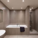 - Moderne pour la salle de bain - l'un des styles les plus acceptables. L'accent est mis sur la fonctionnalité et le confort. Les tons discrets sont les bienvenus: café, beige, lait. Il n'y a pas de place pour des combinaisons de couleurs nettes et flashy dans ce style.