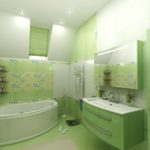 - La couleur verte pour une salle de bain est choisie quand ils veulent créer une atmosphère de détente. La salle de bain verte est idéale pour la détente. Les nuances de vert peuvent dynamiser et une humeur positive. Il y a une association avec la nature. L'entrelacement de plusieurs nuances consonantiques de cette couleur donne à l'intérieur un maximum de naturel. La dilution avec des tons pastel augmente visuellement la taille spatiale.