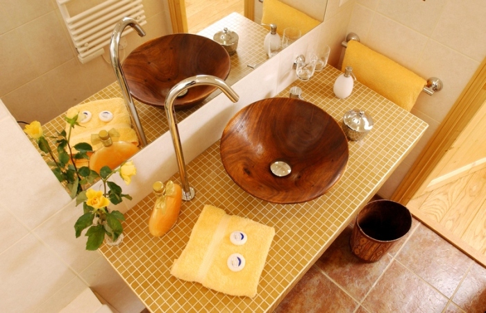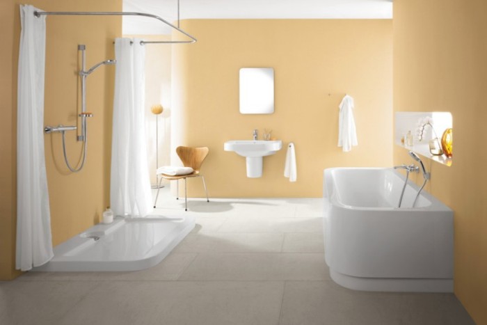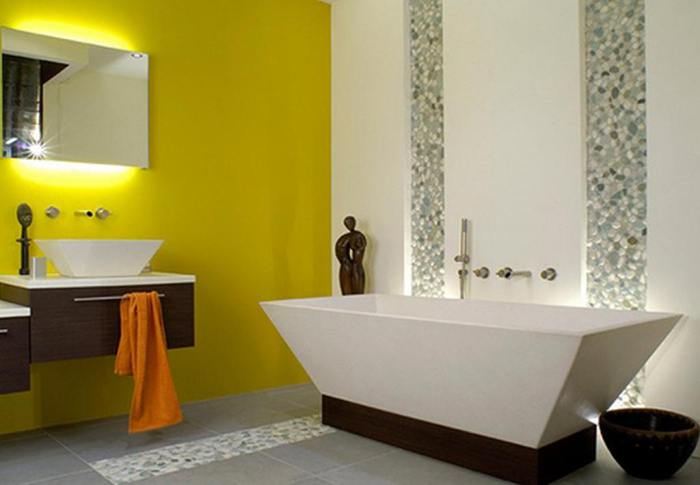 L'atmosphère chaleureuse dans la salle de bain dépend en grande partie de la couleur de l'intérieur.
