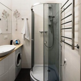 Vous êtes partisan de la concision, alors le lavabo habituel peut être remplacé par un bol moderne avec un comptoir spacieux, sous lequel vous pouvez placer la machine à laver.